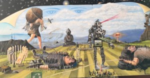 Sepand adds, “We left the concept loose enough in order to have some wonderful collaboration again. Oscar and I were excited to approach Paul Whitehead to discuss the conceptual design. Paul took the idea and drew a proof, which was what you see on the final cover design. I remember that I took Paul’s proof and made a large copy of it, shortly after, when we began recording – Billy Sherwood, Oscar and I – inspired by Paul’s painting, used the paintings images and philosophy and developed songs and lyrics. Once we were done and needed more material, we met with Paul and hoped to inspire him with our sonic development. We would go back and forth several times inspiring one another and until the completion of the music and cover art.”